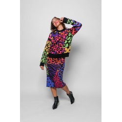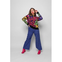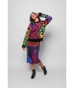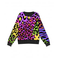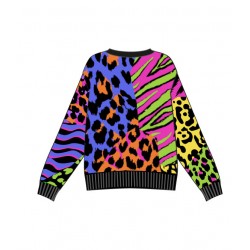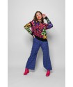 Suéter Sencillo tejido Lolina CAÓTICA. Suéter de punto tejido all over con corte recto y cuello redondo. Diseñado en multi estampado en colores muy llamativos dando lugar a una prenda muy cañera y original que será tu alidad para dar color a esta tempotada de otoño-invierno.