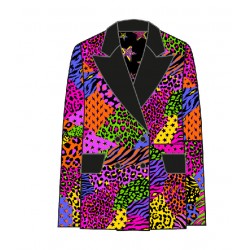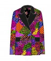 Americana Smoking LOLINA I´M FELINA. Americana de corte recto y manga larga, con cuello smoking, realizada en animal print leopardo que combina los colores rosa, naranja y lila. Dispone de bolsillos delanteros con solapa en color negro a contraste. Con forro interior.