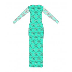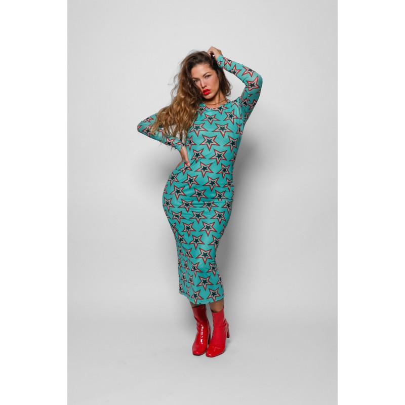 Vestido Tul Entallado Lolina STARWOMAN. Vestido de tul largo entallado y con manga larga. Totalmente estampado de estrellas sobre fondo azul.