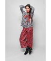 Vestido Tul Entallado Lolina ALMA LIBRE. Vestido de tul largo entallado y con manga larga. Totalmente estampado de elementos en rojo y blanco sobre fondo negro.