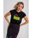 Camiseta Sin Mangas Corte Canalla Lolina SUMMER TIME. Camiseta elástica de corte recto, de manga sisa y cuello redondo en color negro con estampado frontal a todo color BUENA VIBRA.