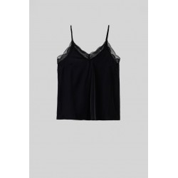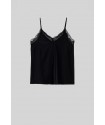 Camiseta Escote Nadador Lolina LET´S GO TO THE BEACH. Camiseta de tirantes con espalda tipo nadadora en punto elástico y de patrón entallado. En color negro con ilustración frontal de leopardo amarillo con gafas y pompa de chicle en rosa. Detalle de ribete fino en cuello y sisas en animal print amarillo.
