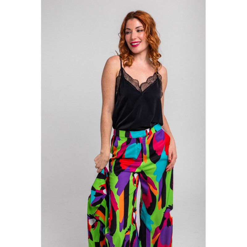 Pantalón Fluído Jogging Lolina AL LORO. Pantalón en tejido fluído en color negro con cinturilla engomada ajustable con cordón, pernera ancha y bolsillos laterales funcionales. Sin costura lateral.
