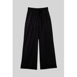 Pantalón Fluído Jogging Lolina AL LORO. Pantalón en tejido fluído en color negro con cinturilla engomada ajustable con cordón, pernera ancha y bolsillos laterales funcionales. Sin costura lateral.