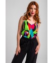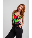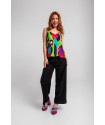 Camiseta Sin Mangas Corte Canalla Lolina SUMMER TIME. Camiseta elástica de corte recto, de manga sisa y cuello redondo en color negro con estampado frontal a todo color BUENA VIBRA.