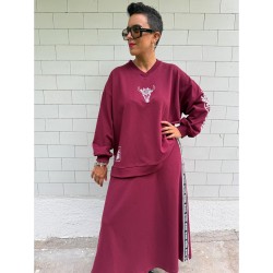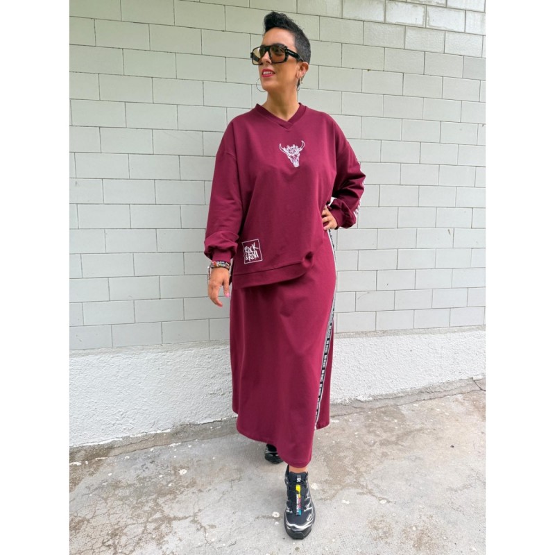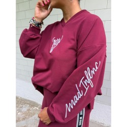 Sudadera Mad Granate de la marca Mad Influence. Sudadera oversize en color granate con cuello pico. Dispone de aberturas laterales. Lleva bordado en el pecho el logo de la marca en color blanco a contarste, así como el nommbre de la marca en el brazo izquierdo.