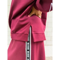 Falda Mad Granate de la marca Mad Influence. Falda realizada en tejido tipo sudadera con goma en la cintura y corte evasé. Realizada en color granate, con detalle de cinta mad influence en el lateral. Una falda muy cómoda realizada en algodón y elástico.