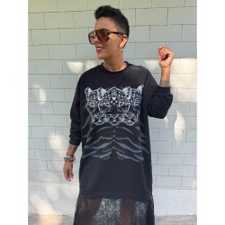 Sudadera Smile de la marca Mad Influence. Sudadera en color negro, de manga caída, con detalles bordados en colores neon rosa y amarillo. De patrón largo y con aberturas laterales.