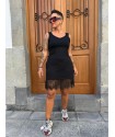En la parte inferior del vestido, encaje, que le aporta ese toque mas romantico a un vestido cañero.