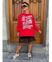 Una sudadera cómoda y versátil que junto con la falda hacen un look muy cañero y cómodo.