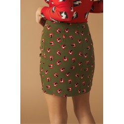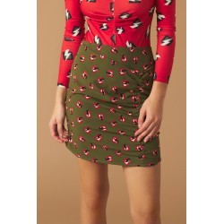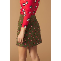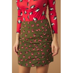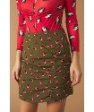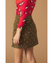 Storm Skirt Minueto. Mini falda en color kaki con total print de rayos enmarcados. Detalle de fruncido delantero y cierre trasero con cremallera. Más ropa Minueto en Sopotey.