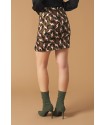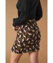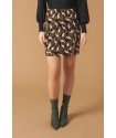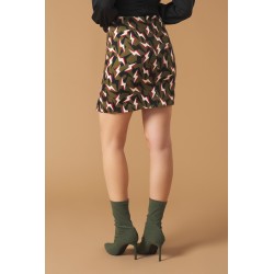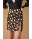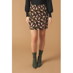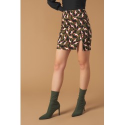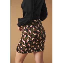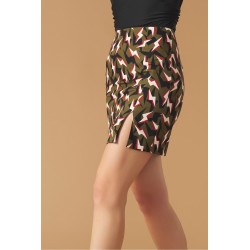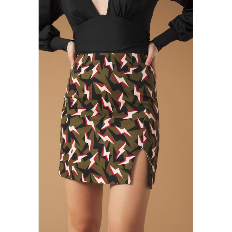 Flash Skirt Minueto. Falda tubo con apertura delantera, con base en color kaki y estampado total de rayos en colores blanco con rojo y negro. Cierre lateral con cremallera. Más ropa Minueto en Sopotey.