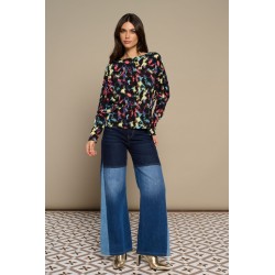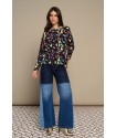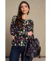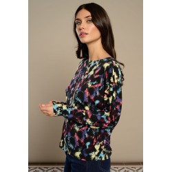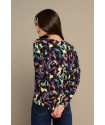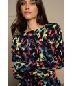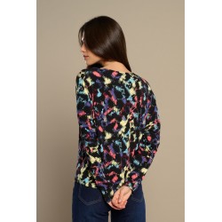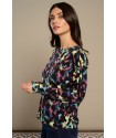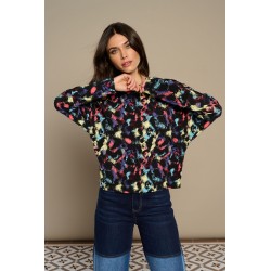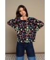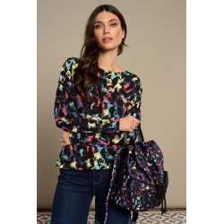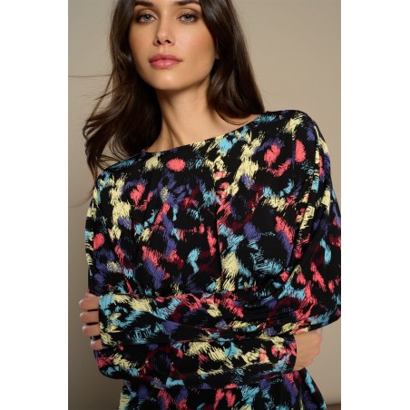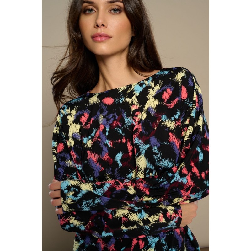 Animale Top de Minueto. Camiseta amplia, de cuello redondo y manga murcielago larga. Totalmente estampada a colores llamativos sobre fondo oscuro convirtiéndola en una prenda muy chic para esta temporada que aportará luminosidad y originalidad a tu look.
