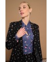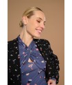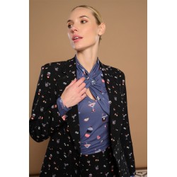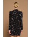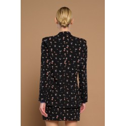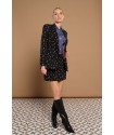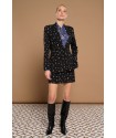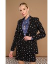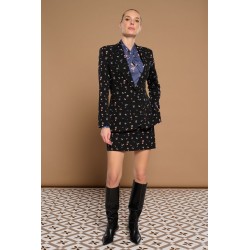 Zia Jacket de Minueto. Chaqueta tipo americana, en color negro con total print de pequeños cócteles en tonos azul, marrón y naranja. Falsos bolsillos de solapa yy cierre de único botón en el frontal.