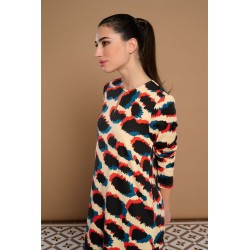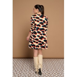 Mattea Dress Minueto. Vestido corto estampado, con base en color crema. De cuello redondo y escote en lágrima con botón. Dispone de bolsillos laterales.