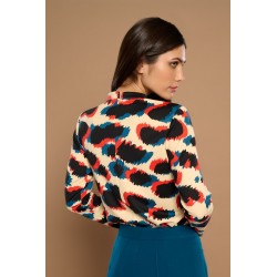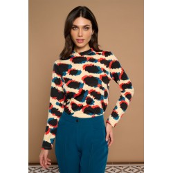 Gateta Sweater Minueto. Jersey de punto elástico en color rosa con cuatro caras de leopardo en diferente tono a contraste y en consonancia con la colección a la que corresponde. Con detalle de estrellas en los hombros. Cuello, puños y bajo en rib.