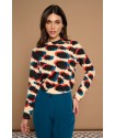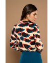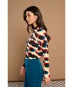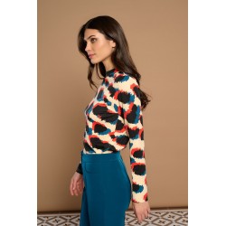 Micho Sweater Minueto. Jersey de punto elástico en color verde y negro, con cuello redondo y manga larga. Leopardo bordado en la manga y detalle de tachuelas de estrella en el hombro.