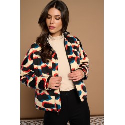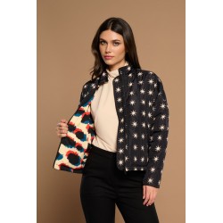Mattea Jacket Minueto. Chaqueta reversible en la que se combinan dos de las colecciones de esta temporada, de estrellas o estampado animal print. De cuello redondo y manga larga. Cierre de cremallera oculta por solapa y bolsillos laterales en ambos estampados.