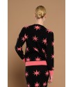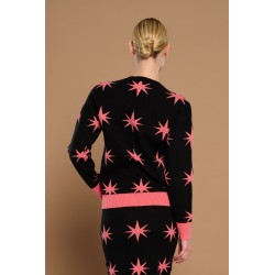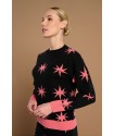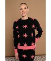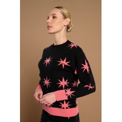 Coral Sweater Minueto. Jersey de punto en color negro con estrellas en color rosa a contraste, así como el rib de puños y bajo. De cuello redondo. Tejido elástico.