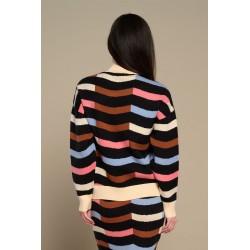 Micho Sweater Minueto. Jersey de punto elástico en color verde y negro, con cuello redondo y manga larga. Leopardo bordado en la manga y detalle de tachuelas de estrella en el hombro.