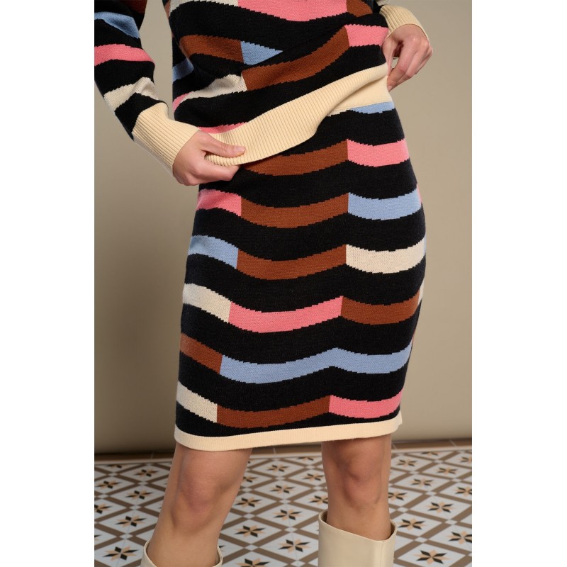 Teresa Skirt Minueto. Falda de punto estilo tubo realizada a rayas de colores intercaladas con rayas en negro.