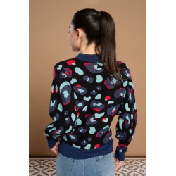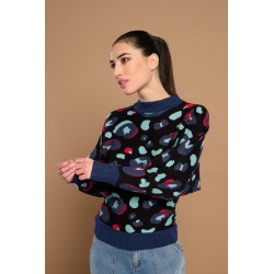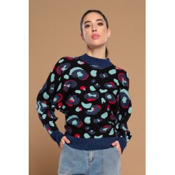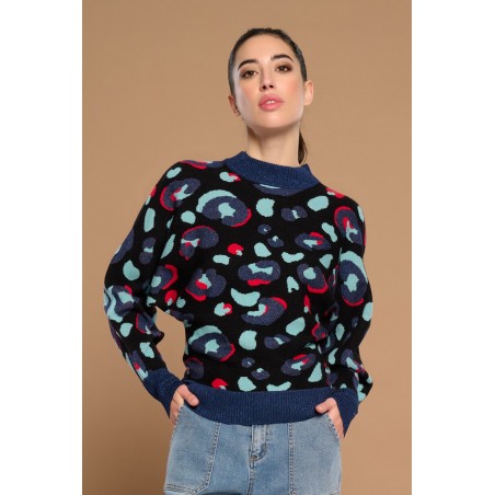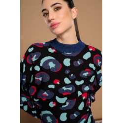 Leo Sweater Minueto. Jersey de punto en animal print de leopardo, con cuello redondo y manga larga en rib.