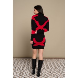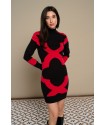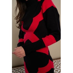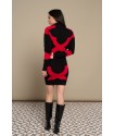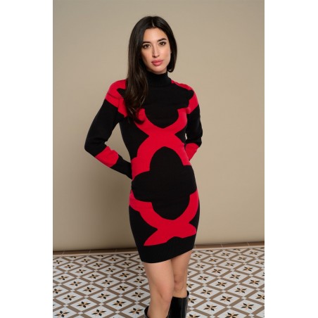 Mosaic Dress Minueto. Vestido de punto elástico con base en negro y diseño de mosaico en rojo a contraste.