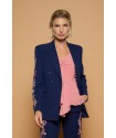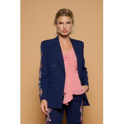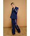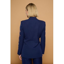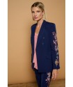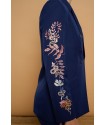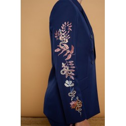 Silene Jacket de Minueto. Chaqueta tipo americana, de cierre de botón, en color azul oscuro y con bordado en las mangas de flores y serpientes que atraerá todas las miradas porque no puede ser más espectacular. Un modelo entallado gracias a las pinzas frontales y traseras