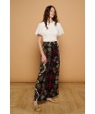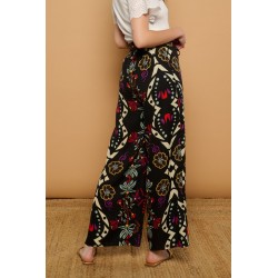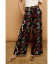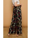 Catxuli Trousers Minueto. Pantalones vaporosos de pata ancha y tejido fluído con un estampado de estilo boho, cinturilla elástica con lazada y bolsillos funcionales. Cómodos tanto para la primavera como para el verano y llenos de color para combinar con cualquier camiseta.