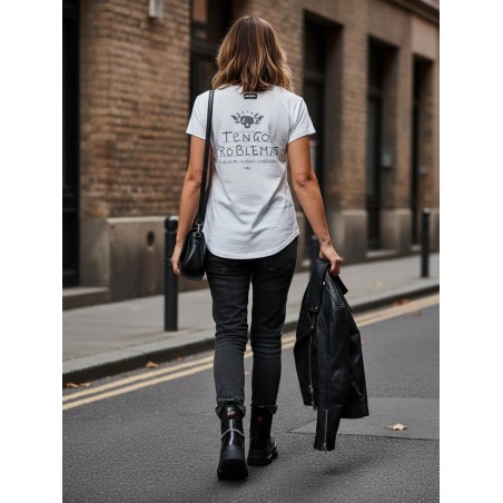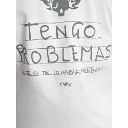 Camiseta Blanca Problemas de Aire Retro. Camiseta basica blanca de manga corta, con frase trasera "Tengo problemas (No se si te lo habia comentado)". Un fondo de armario imprescindible!