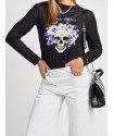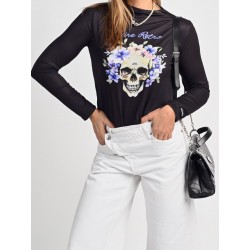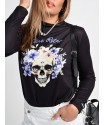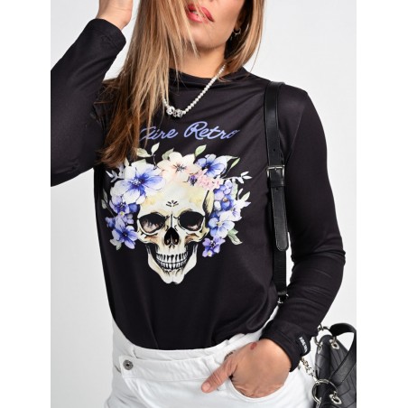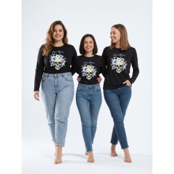 Camiseta Lady Violet Negra de Aire Retro. Camiseta de punto suave en color negro con la ilustración lady violet que nos enamoró en la versión tul. De manga larga.
