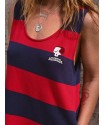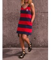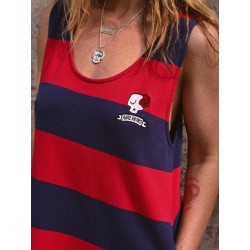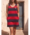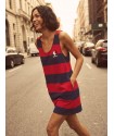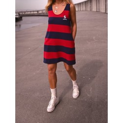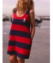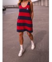 Vestido Tipo Pichi Calavera de la marca Aire Retro. Vestido tipo pichi, de rayas tejidas rojas y azules, y un bordado de calavera en pecho muy aire retro. Dispone de bolsillos laterales.