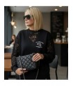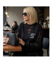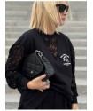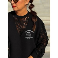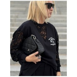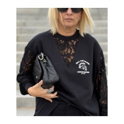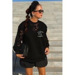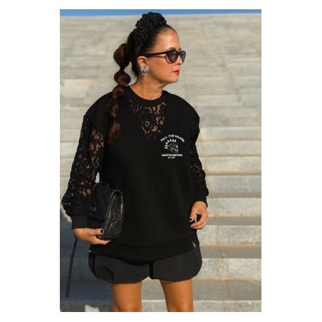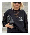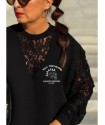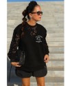 Sudadera Lace Rebel Negra de Noc the Brand. Sudadera de corte oversize, única y diferente a otras prendas que se hayan visto de la marca, ya que combina felpita gustosa en el interior, aberturas laterales para mayor comodidad y encaje en mangas y cuello pico. Una pernda icónica para esta temporada.