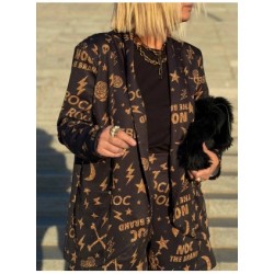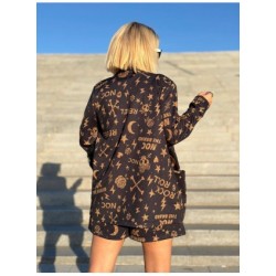 <p>Base en color negro y total print en color bronce / dorado con rayos, calaveras, lunas, estrellas... ideal para cenas y eventos, pero sin perder ese toque rock que nos encanta</p>