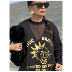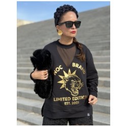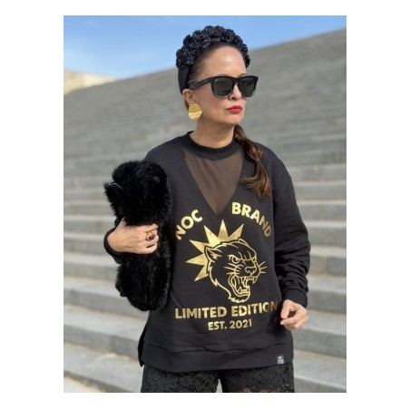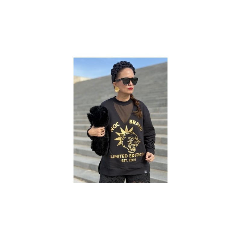 Sudadera Black Feline de Noc the Brand. Sudadera de corte oversize, con base en color negro y prit frontal en foil dorado. Logo de la marca y un puma con una gran estrella con la frase Limited Edition, ya que esta sudadera es una edicion limitada y una vez que se agote, no volvera.