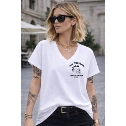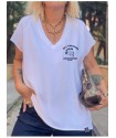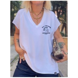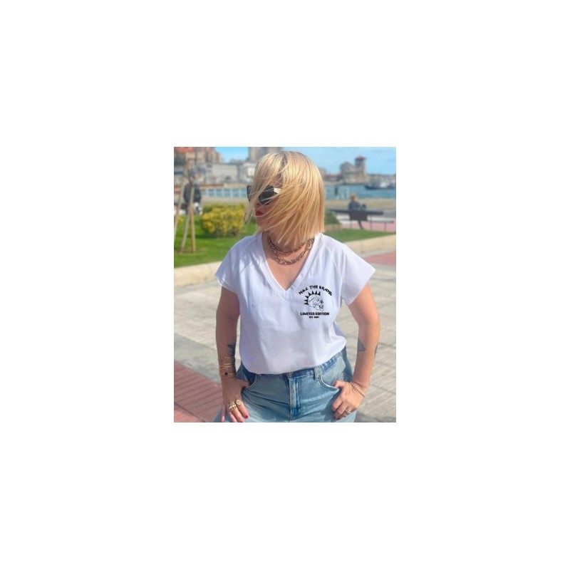 Cami Oversize Básica Skull Blanca de Noc the Brand. Camiseta de corte oversize con cuello pico, manga corta y el logo de la marca en el pecho en negro a contraste. Un fondo de armario que acompañará todos tus looks a lo largo del año realizada en algodón 100%.
