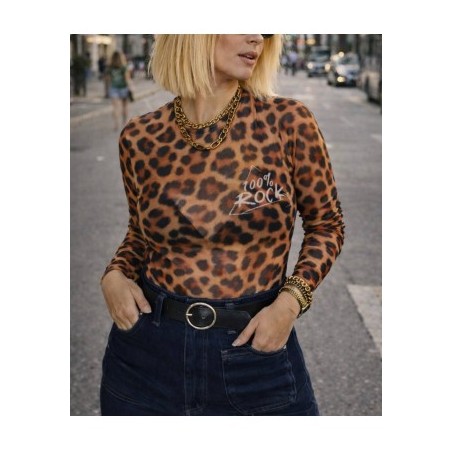 Cami Tul Leopardo de Noc the Brand. Camiseta con cuello redondo y realizada en tul muy gustoso, de estampado animal print de leopardo.