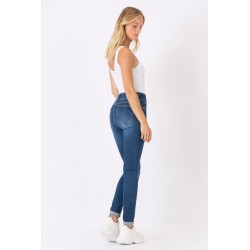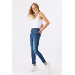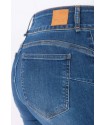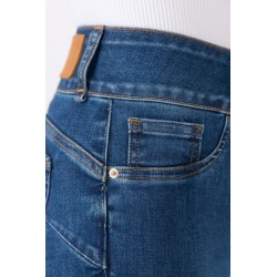 Pantalón One Size Double Confort 4 de la marca Tiffosi. Pantalón de talla única con tiro alto y en tono vaquero medio. Se adaptan al cuerpo a la perfección y está confeccionado con un tejido que no queda cedido tras su uso, es decir, vuelve a su ser. Dispone de cierre frontal con cremallera y doble abotonadura. Con falsos bolsillos delanteros.