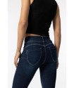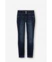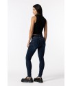 Pantalón One Size Double Up 104 de la marca Tiffosi. Pantalón de talla única con tiro alto y en color vaquero oscuro desgastado con detalle de logo de la marca en la parte trasera al lado de la trabilla en cristalitos. Se adaptan al cuerpo a la perfección y está confeccionado con un tejido que no queda cedido tras su uso, es decir, vuelve a su ser. Dispone de cierre frontal con cremallera y doble abotonadura. Con falsos bolsillos delanteros.