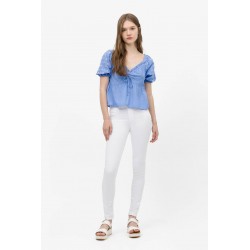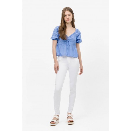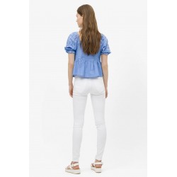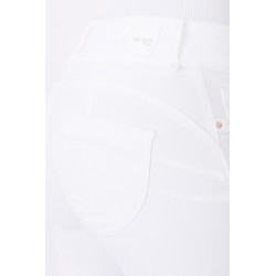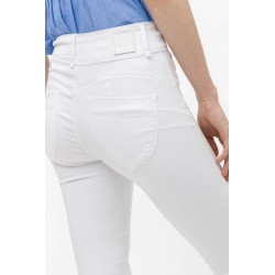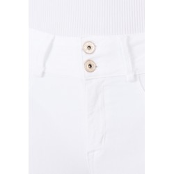 Pantalón One Size Double Up 67 de la marca Tiffosi. Pantalón de talla única, con tiro alto y en color blanco. Se adaptan al cuerpo a la perfección y está confeccionado con un tejido que no queda cedido tras su uso, es decir, vuelve a su ser. Dispone de cierre frontal con cremallera y doble abotonadura. Con falsos bolsillos delanteros. Tejido vaquero algo más fino para que puedas disfrutar de la prenda en la temporada de verano.