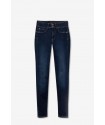 Pantalón One Size Classic 1 de la marca Tiffosi. Pantalón de talla única con tiro alto y en tono vaquero oscuro. Modelo básico de la marca Tiffosi, que se adapta al cuerpo a la perfección aportando un efecto vientre plano. Está confeccionado con un tejido que no queda cedido tras su uso, es decir, vuelve a su ser. Dispone de cierre frontal con cremallera y doble abotonadura. Con falsos bolsillos delanteros.