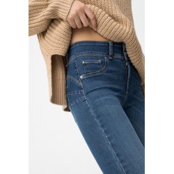 Pantalón One Size Double Confort 4 de la marca Tiffosi. Pantalón de talla única con tiro alto y en tono vaquero medio. Se adaptan al cuerpo a la perfección y está confeccionado con un tejido que no queda cedido tras su uso, es decir, vuelve a su ser. Dispone de cierre frontal con cremallera y doble abotonadura. Con falsos bolsillos delanteros.