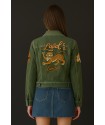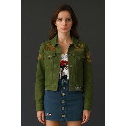 Cazadora exclusiva de mujer Pilot Kaki de la marca LASAL. Cazadora vaquera en color kaki con bolsillos laterales abiertos y centrales con cierre de botón. Lleva varios bordados en color dorado en la prenda, tanto en pecho, como en mangas y un maxi bordado en la espalda. Como no podía ser de otro modo uno de los bordados corresponde a la numeración aleatoria de la marca que garantiza que únicamente hay 100 unidades de la misma y el logo de la firma engomado que avala la autenticidad de la prenda.