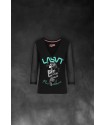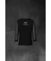 Camiseta exclusiva de mujer Glamour Negro. Camiseta en color negro, con cuello pico y mangas 3/4 de gasa semitransparente.