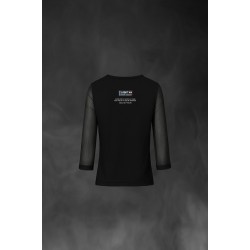 <p>Camiseta exclusiva de mujer Glamour Negro. Camiseta en color negro, con cuello pico y mangas 3/4 de gasa semitransparente.</p>