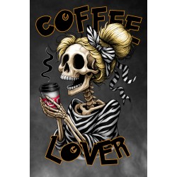 <p>Ilustración de una cmujer calavera amante del café "coffee lover" muy cañera.</p>