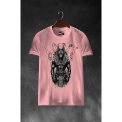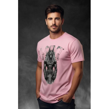 Camiseta Chico LASAL Anubis Rosa. Camiseta de manga corta y cuello redondo, en color rosa, con ilustración frontal de inspiración egipcia, con el dios Anubis en tonos grises.