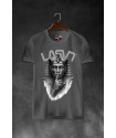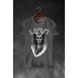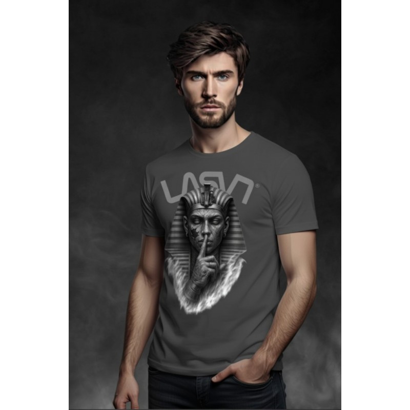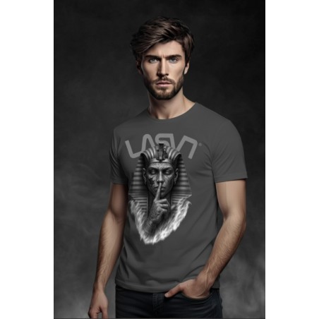 Camiseta Chico LASAL Egip Gris. Camiseta regular fit, de manga corta y cuello redondo, en color gris, con ilustración frontal de temática egipcia, con un rey egipcio mandando callar en tonos grises.