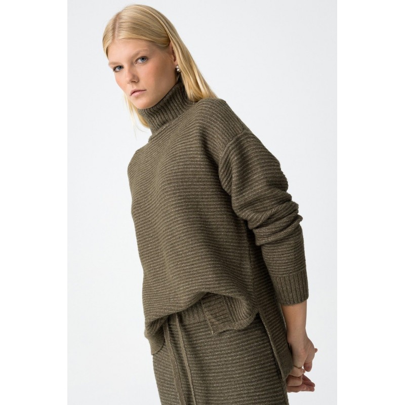Jersey Muffin 5C Pimienta Verde Tiffosi. Jersey en color verde, regular fit con canalé, cuello vuelto, manga larga y aberturas laterales en el bajo. Ideal para combinar con la falda Muffin y crear un outfit invernal ideal con una bota alta.