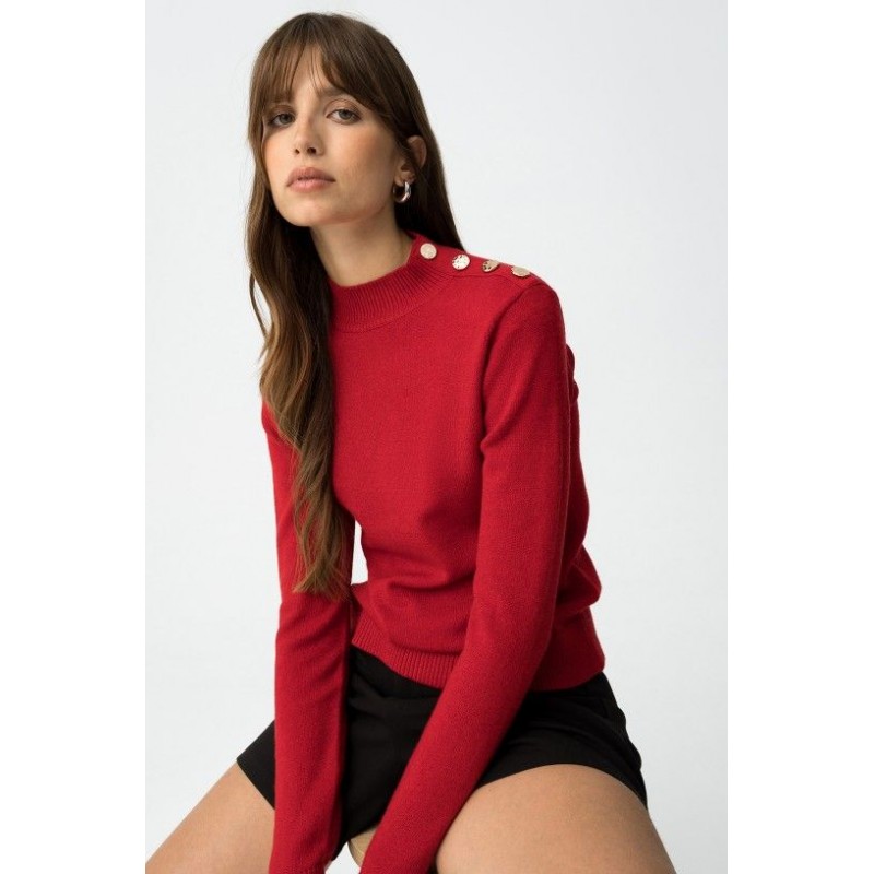 Jersey Bauhaus Pimienta Roja Tiffosi. Jersey slim fit en color rojo de cuello alto y manga larga. Detalle de botones metálicos en color dorado en el hhombro izquierdo.